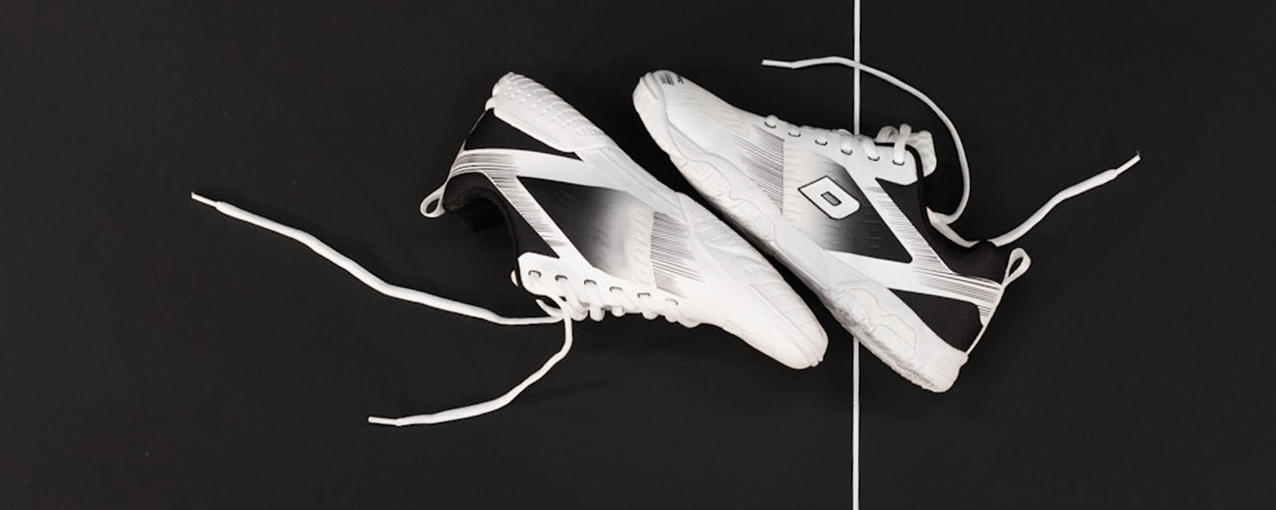 Highly flexible competition table tennis shoe with a flat and very grippy sole for direct ground contact, ideal for fast changes of direction.